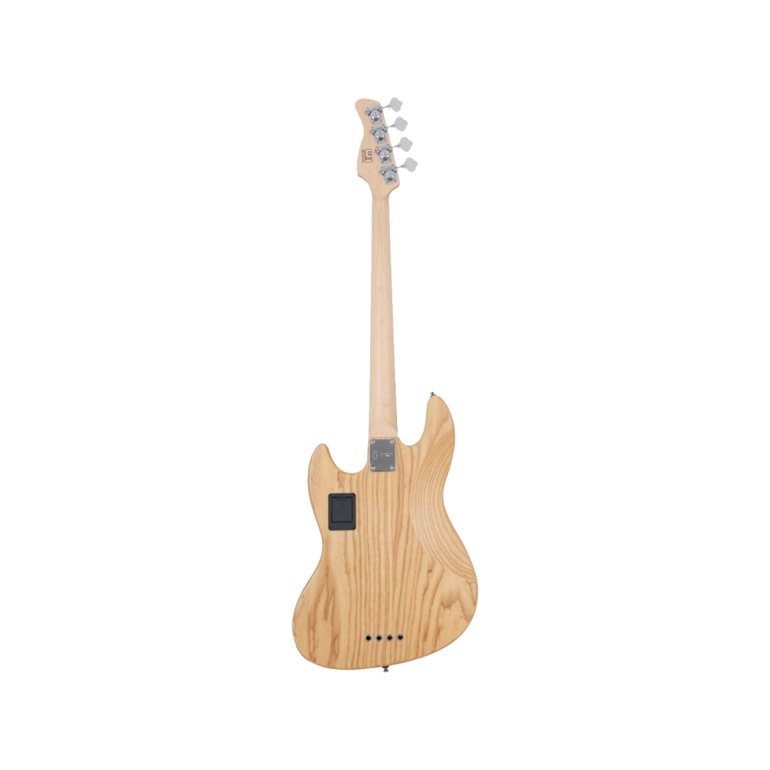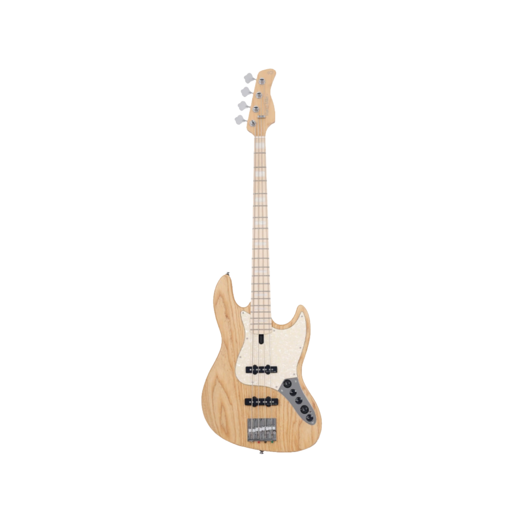El Sire V7 Ash-4 NT es un bajo de 4 cuerdas que combina una estética clásica con una electrónica extremadamente versátil. El cuerpo está construido en Fresno del Pantano (Swamp Ash), una madera premium conocida por su gran resonancia, graves profundos y agudos cristalinos. El acabado NT (Natural) resalta la veta característica del fresno, dándole un aspecto orgánico y lujoso.