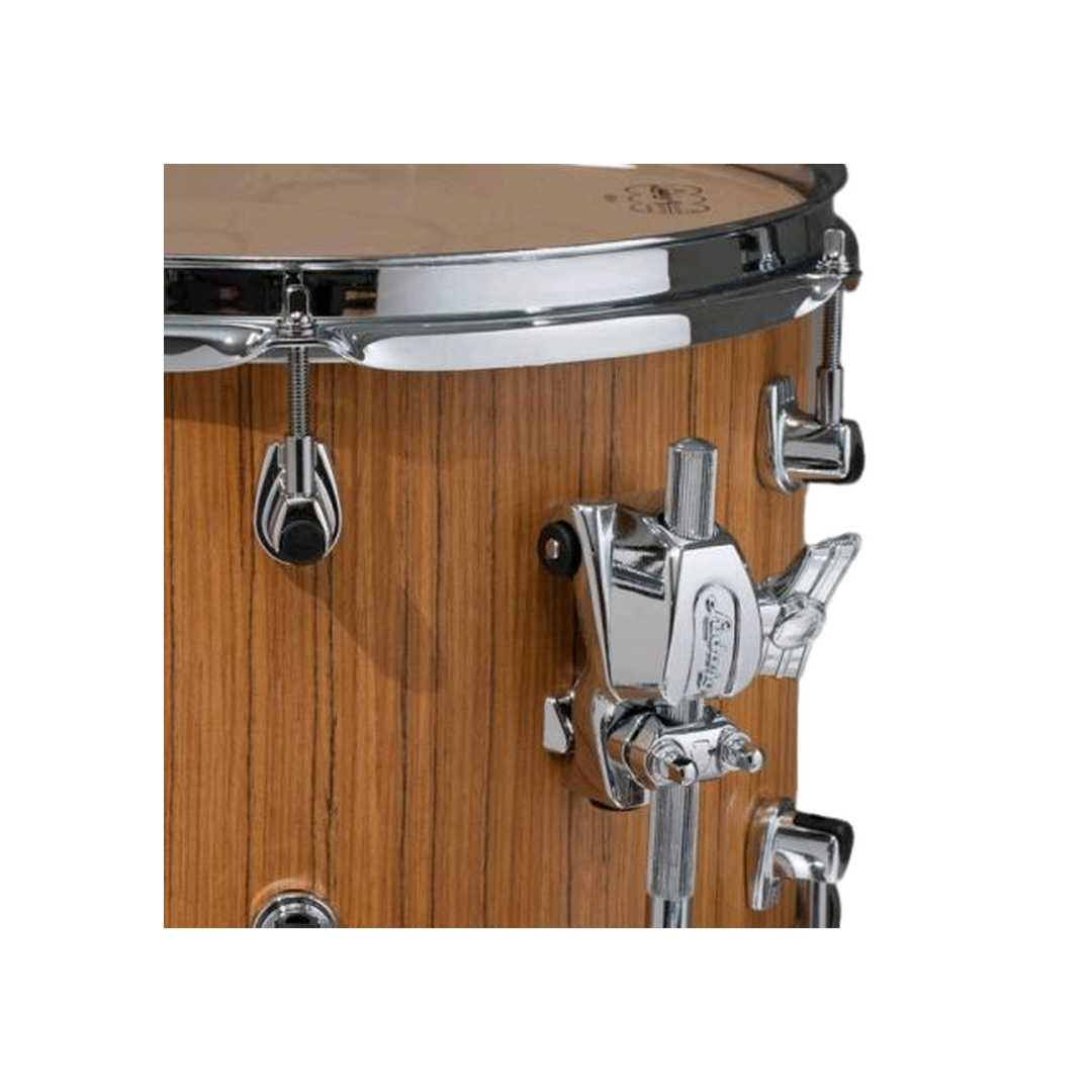 El LSS030XTK es lo que Ludwig llama un kit Signet GigaBeat, lo que significa que consta de un bombo de 20″, un tom de suelo de 14″ y un tom de 12″. Por supuesto, se incluyen todos los soportes necesarios, varillas tensoras para las patas y otros materiales de montaje. En menos de 30 minutos, puedes colocar las orejetas en su lugar, fijar los soportes Triad para las patas y los soportes del timbal de piso, y montar los aros y parches en los cascos usando las varillas tensoras. ¡Un juego de niños! Aún mejor: como recompensa, ¡Ahora tienes una batería magnífica y liviana que ofrece un sonido fantástico y presenta un magnífico acabado satinado de teca india!