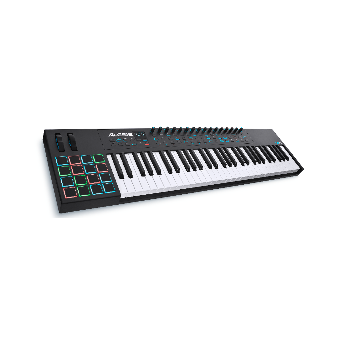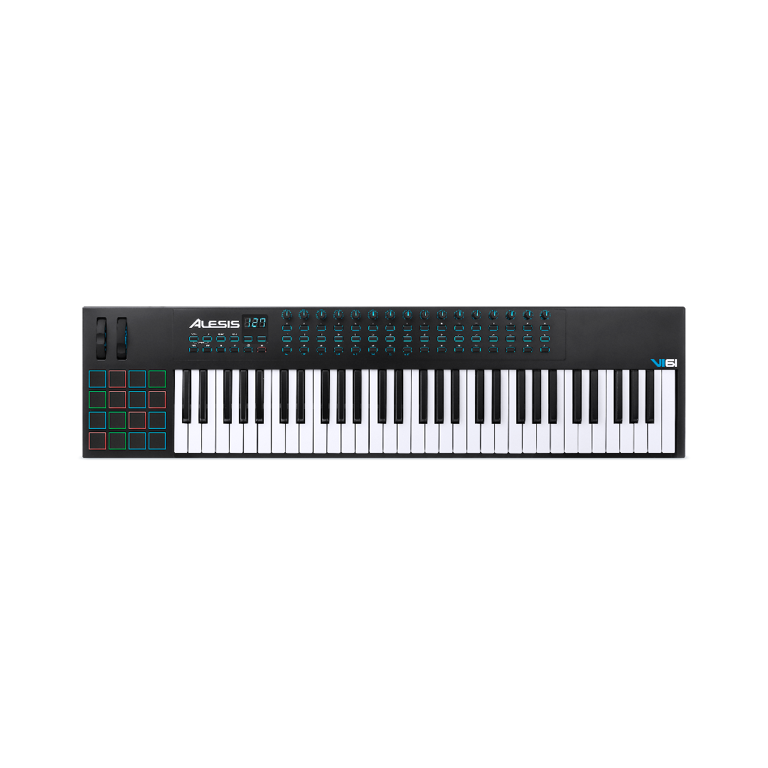 El Alesis VI61 es un controlador MIDI de teclado USB / MIDI avanzado que le permite tomar el control de su software de música con una serie de pads, perillas y botones. Con 61 teclas semi-ponderadas sensibles a la velocidad con aftertouch y botones Octave Up / Down, puede expandir el teclado a la gama melódica completa y tocar líneas de bajo, acordes y melodías. VI61 también cuenta con 16 perillas asignables y 48 botones asignables para manipular complementos de efectos e instrumentos virtuales: abrir y cerrar filtros, ajustar niveles de volumen, activar efectos, ajustar parámetros y más. Los 16 pads de disparo RGB sensibles a la velocidad le permiten lanzar clips o tambor de dedo con una respuesta excepcional y una retroalimentación visual colorida. Además, las ruedas de tono y modulación amplían las capacidades expresivas de su interpretación.