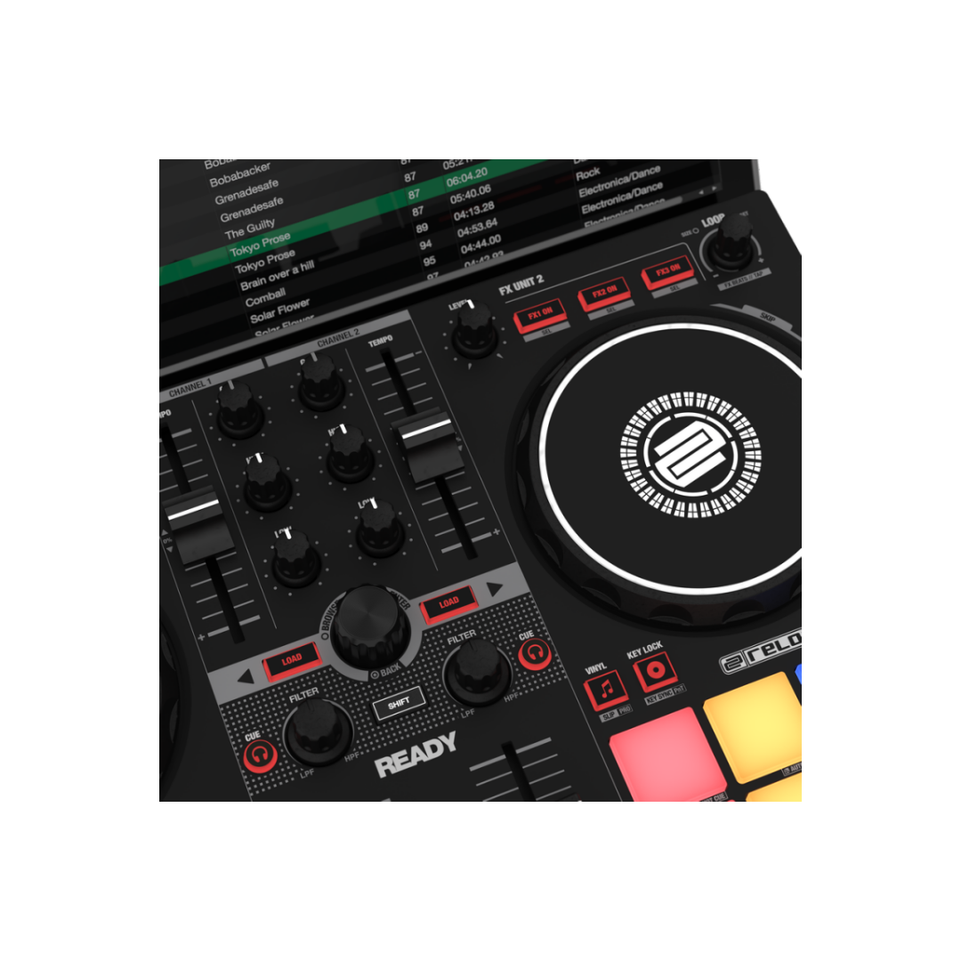 Con las necesidades específicas de los DJ de hoy en día en mente, Reloop Ready fue concebido por nuestro elenco de artistas de primera clase mundial y desarrollado en estrecha colaboración con los líderes de la industria Serato para una conexión e integración son software los más fácil posible: Nada más sacarlo de la caja todo está listo para trabajar. Tanto si eres un absoluto principiante o un usuario experimentado, un home DJ con ganas de progresar o todo un profesional que va de gira, el Reloop Ready proporciona una solución integral que brinda a los DJ todas las herramientas que necesitan para actuar, e incluso preparar mientras viajan sus más increíbles actuaciones en cualquier momento y lugar.