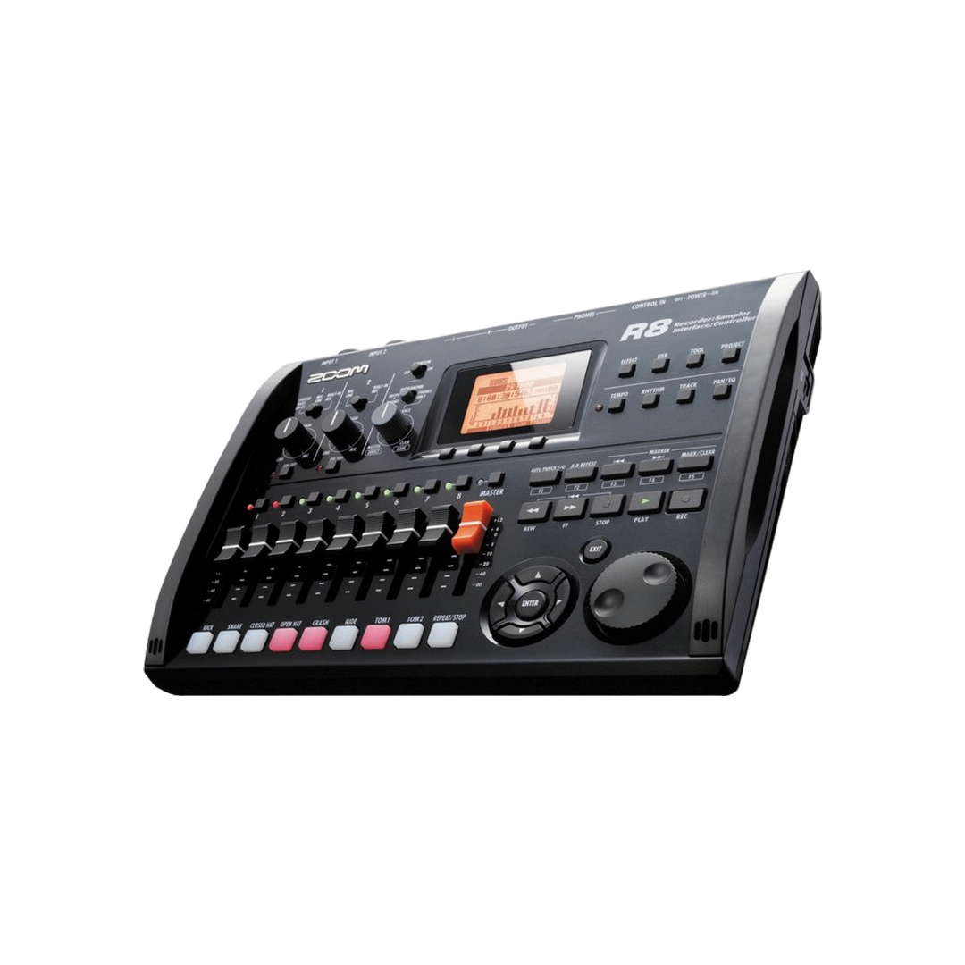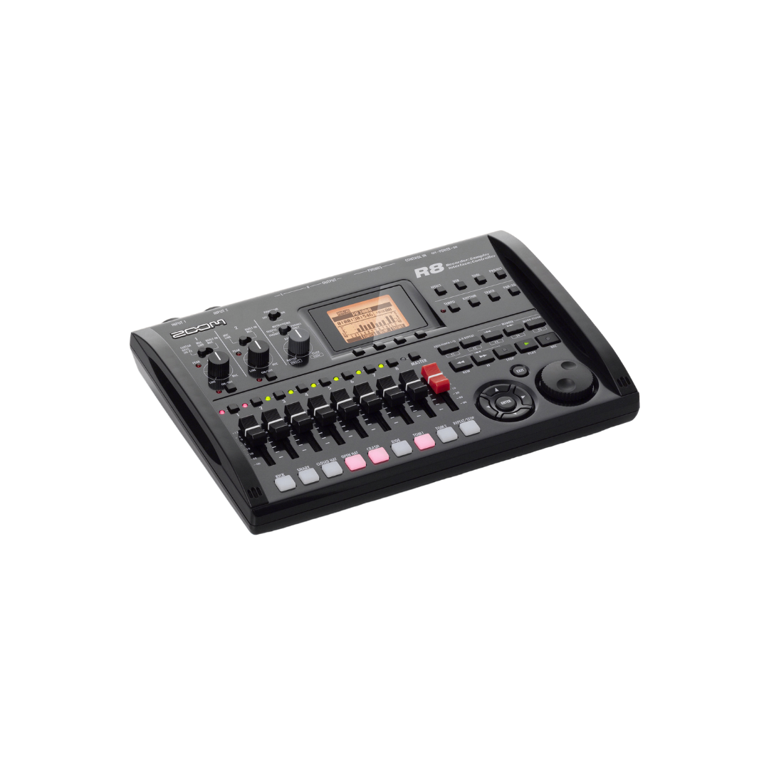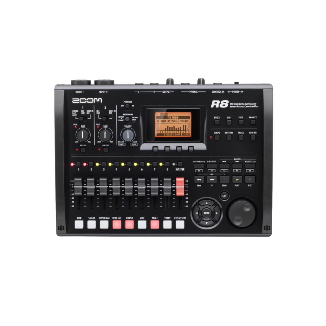 El R8 8-Track Digital Recorder / Interfaz / Controlador / Sampler de Zoom es una solución de producción de música ultra-portátil, ideal para el músico en movimiento. El R8 empaqueta la versatilidad del R24 más grande en un diseño compacto fresco. No sólo es el R8 un grabador de 8 pistas que escribe en tarjetas de memoria flash SD, es también una interfaz de audio USB, un controlador y un muestreador de pad!