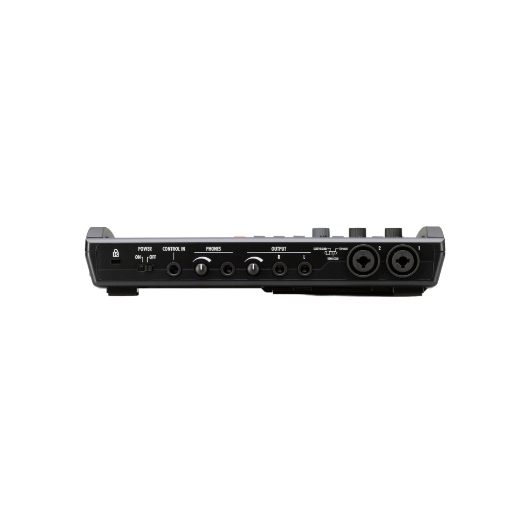 El R8 tiene 2 pistas de grabación simultánea y 8 pistas de reproducción. Puede grabar archivos WAV a velocidades de muestreo de 44.1 / 48kHz y velocidades de bits de 16/24 bits. Los archivos se capturan en tarjetas de memoria SD con capacidades de hasta 32GB para realizar grabaciones largas. Hay micrófonos incorporados estéreo condensador para hacer grabaciones sin equipo adicional. También hay entradas combinadas XLR / TRS para conectar micrófonos e instrumentos externos. Hay alimentación phantom de 48V disponible en 2 pistas para apoyar los micrófonos del condensador. Puede elegir entre más de 140 efectos DSP para agregar a sus grabaciones, incluyendo modelos de amplificadores de guitarra y efectos de masterización.