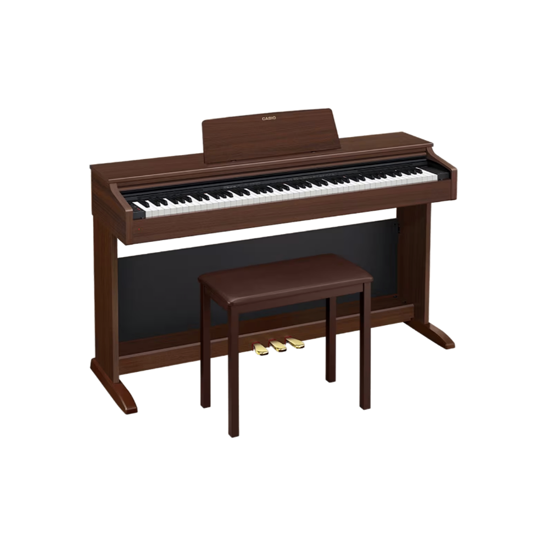 El CASIO CELVIANO AP-270 es el piano digital perfecto para principiantes y músicos aficionados que buscan una experiencia de piano auténtica. Con su diseño renovado y su nueva cubierta de teclado, este piano de mueble ofrece un aspecto elegante y moderno.