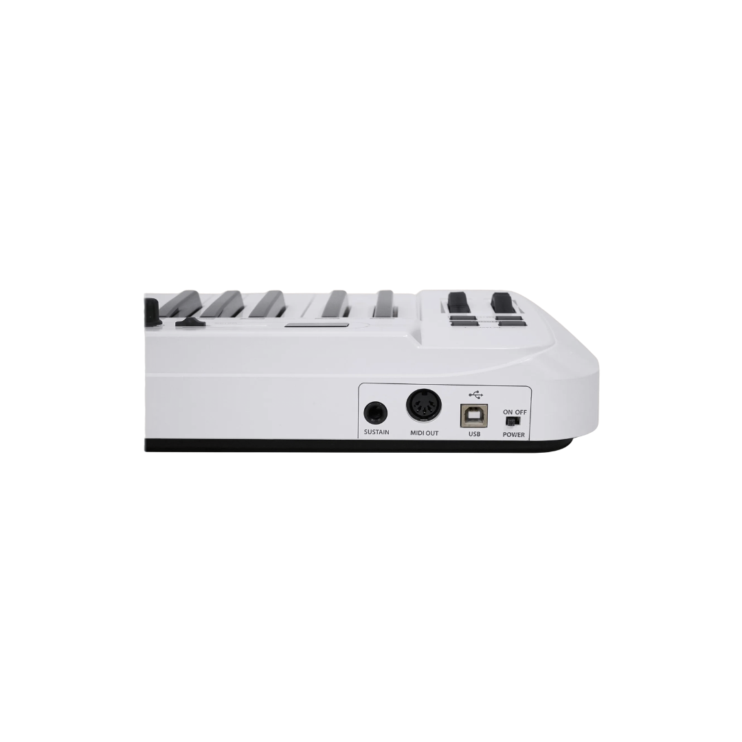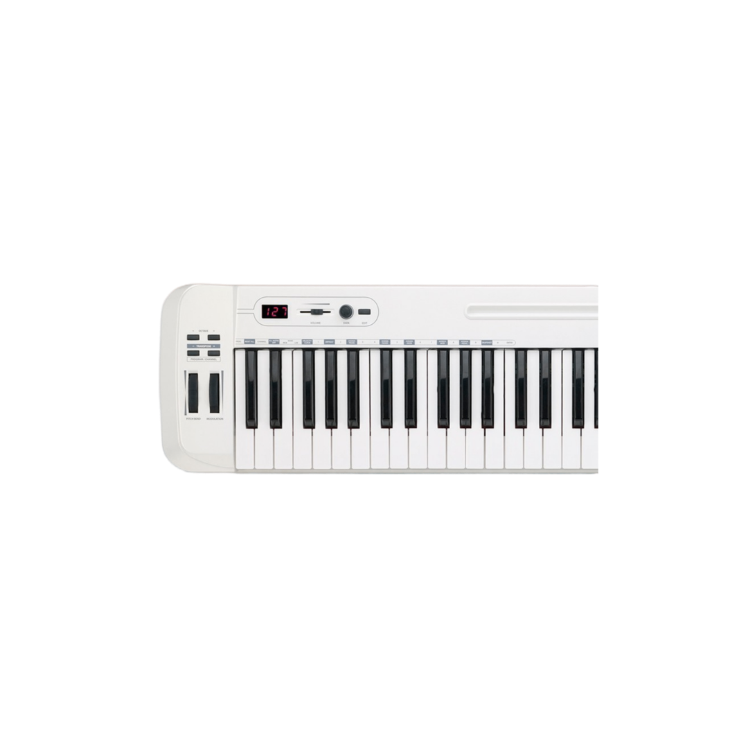 Incluye tradicional salida MIDI, entrada para pedal de Sustain y conexiones USB
