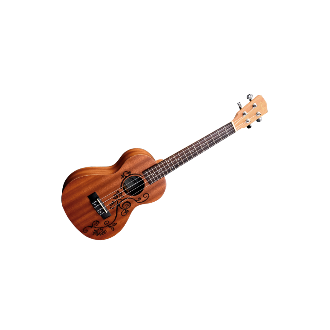Ukelele 196T (26″), con diapason y puente Rosewood, cuello Okoume, tapa, aro y fondo Sepele, sin cenefa. Clavijas blindadas, costillas y refuerzos internos que le dan gran resonancia y afinacion precisa.
